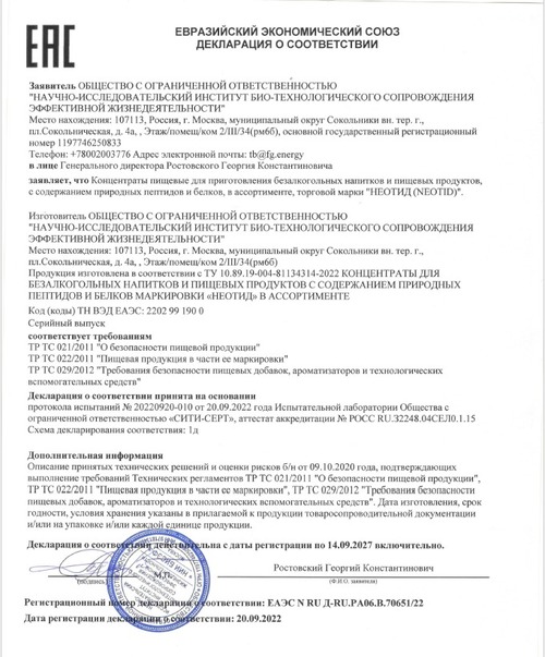Концентрат Пептидно-белковой композиции на основе Протонеотида ткани кишечника и микроэлементов Se, Ge, Mn, Zn, Na, Ca, K